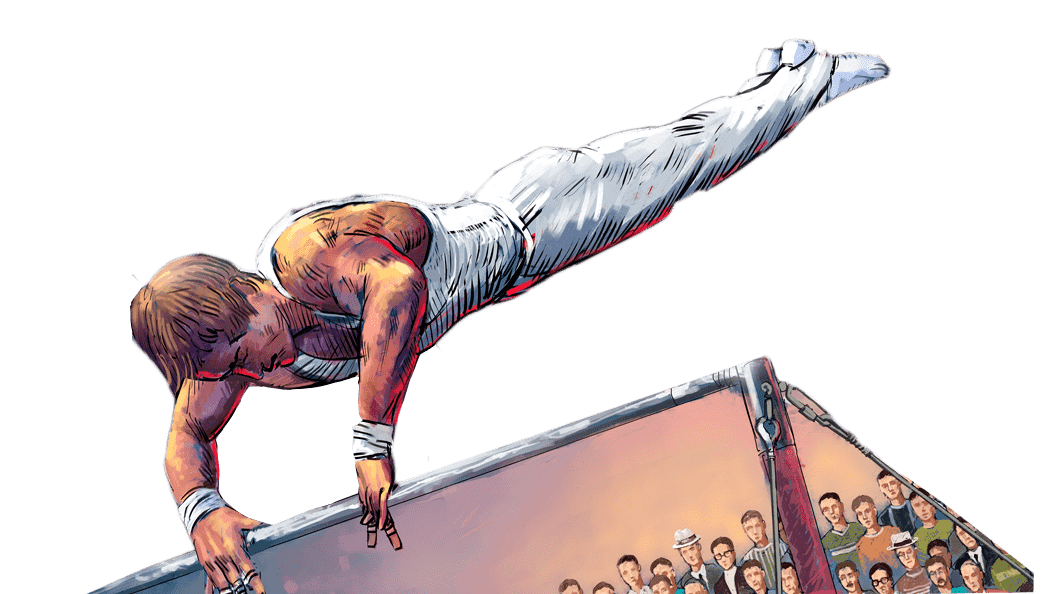 Мастер спорта СССР по гимнастике. В бою под Полтавой был ранен и попал в плен — прошел 17 концлагерей. Был спасён с «баржи смерти». Чемпион СССР по спортивной гимнастике, четырехкратный чемпион Олимпийских игр.