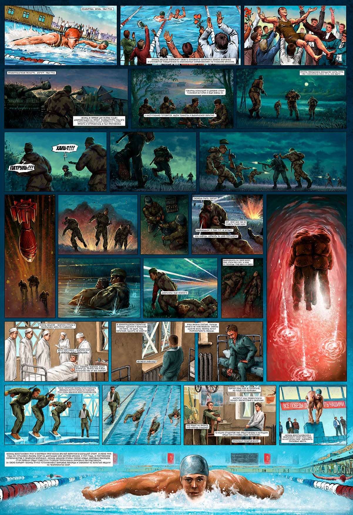 Мировой рекордсмен по плаванию. Выступал за московской «Торпедо» (водное поло). Завоевал 42 золотые награды на чемпионатах СССР. Командовал разведгруппой и совершал ночные вылазки за линию фронта. Переплыл через реку с тяжело раненым товарищем на руках. Получил пулю в плечо.